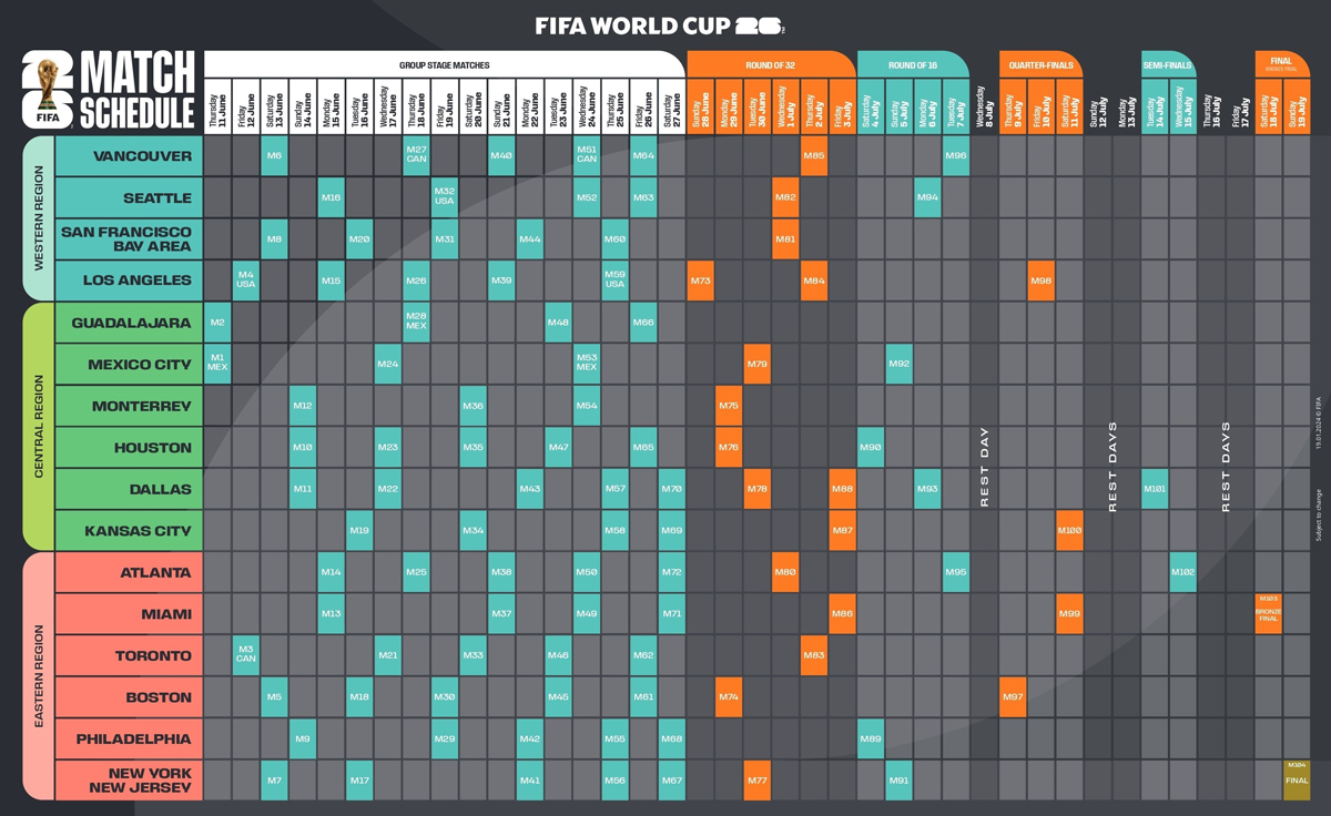 مسابقات جام جهانی 2026 به مدت 38 روز به صورت فشرده برگزار خواهد شد و هر روز شاهد برگزاری 4 بازی خواهیم بود. این یعنی یک ماه سرگرمی تمامعیار برای فوتبالدوستان!